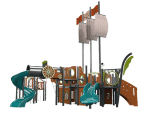 The Caribbean Ship Model was developed as an expanded and enhanced version of one of our most beloved pirate ship designs. Already featured in playgrounds across the country, the original model inspired this client to dream bigger—requesting a larger structure with more play opportunities and a stronger visual presence. In response, we created a custom-designed ship that transforms classic pirate play into a grand, immersive adventure.
