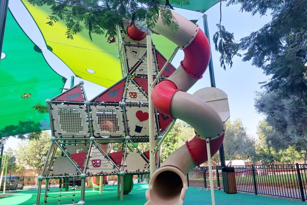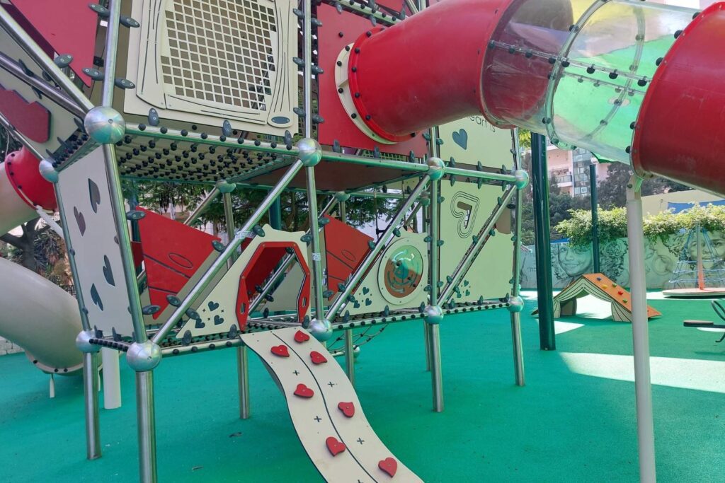 One of the playground’s standout features is a wheelchair-accessible carousel, ensuring that children of all abilities can fully participate in the fun. The park is designed to be inclusive, with accessible pathways, carefully planned equipment, and spaces where children can interact freely. By combining thoughtful accessibility with playful design, Love Park provides an environment where every child feels valued, engaged, and part of the community.