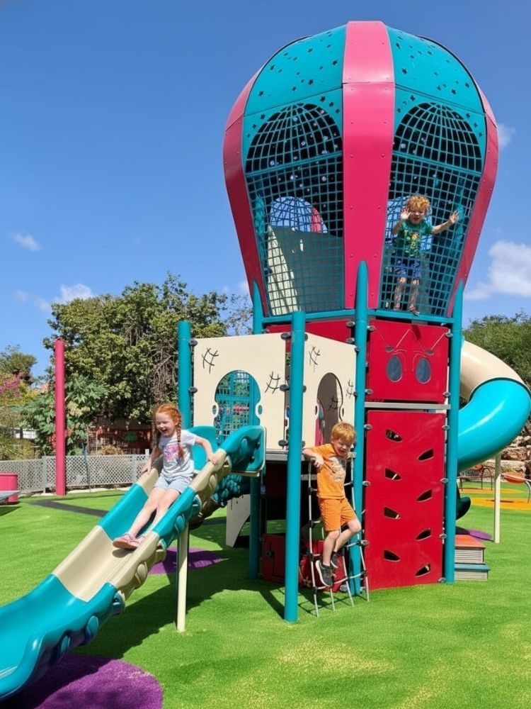 At the center stands a large Hot-Air Balloon tower with slides, serving as an exciting focal point full of adventure.