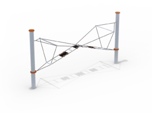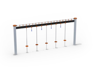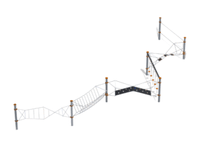 The park is carefully divided into distinct areas based on age and difficulty, allowing children to play safely while still being challenged at their own level. The main zone is dedicated to extreme and sports-oriented structures, encouraging strength, agility, and confidence. Nearby, an area designed for older children features a large combined play structure inspired by a fortress, complete with cables, bridges, and elevated pathways that promote balance, coordination, and teamwork. Each zone flows naturally into the next, creating a playground experience that evolves as children grow.