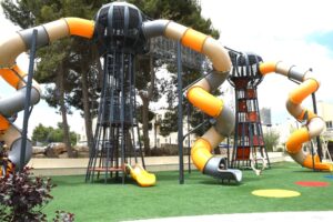 This exceptional playground was designed to stand apart from ordinary parks—offering a large, dynamic space filled with excitement, challenge, and variety for children of all ages. At its heart is Bubbles, a striking challenge structure that serves as the centerpiece of the park and sets the tone for adventure-driven play. Recognized with the prestigious Red Dot Award in 2019, this project reflects a bold vision where innovative design, physical challenge, and playful exploration come together in one cohesive environment.