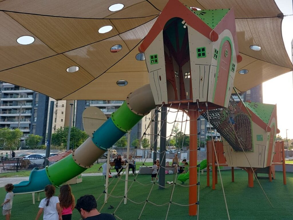 Surrounding the treehouse are carefully selected play elements that enhance the overall experience. These include an accessible Leaf & Rose swing, a charming Mushroom House play unit for toddlers, as well as a variety of carousels, swings, and additional play features. Together, these elements create a balanced playground that blends adventure, accessibility, and imagination—ensuring fun, comfort, and connection for children and adults alike.