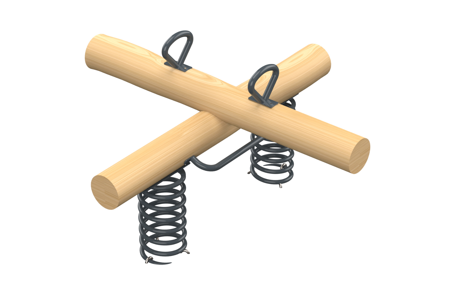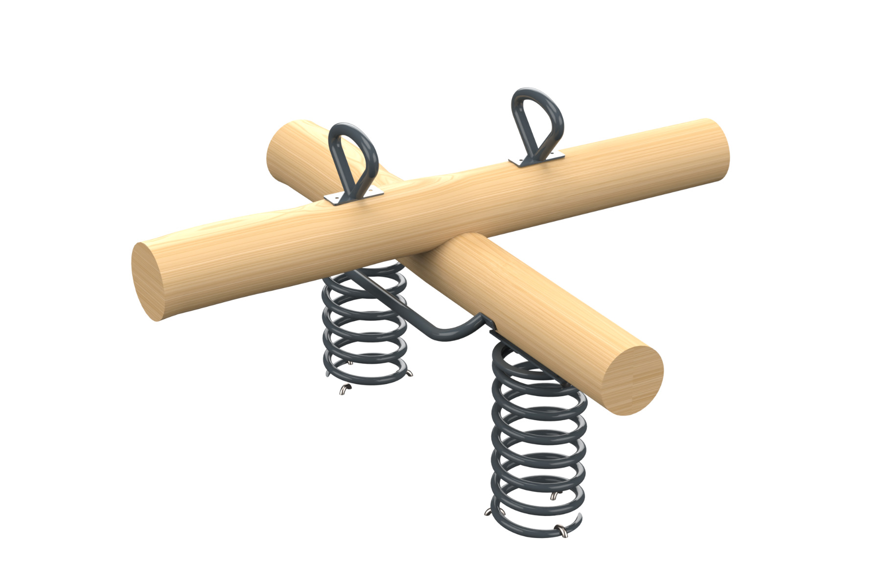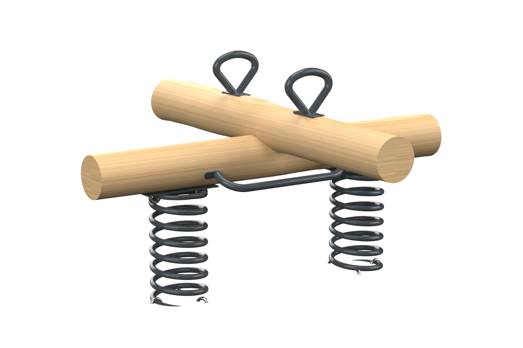 A spring-based swing set for up to four players, made of natural Robinia Wood and galvanized steel elements. The device includes quality spiral springs that provide a unique rocking experience with an intriguing bouncing sensation. The design of the device allows children to enjoy group play while developing balance, coordination, and physical strength. The swing is designed for dynamic and energetic games that help boost self-confidence and communication between children.