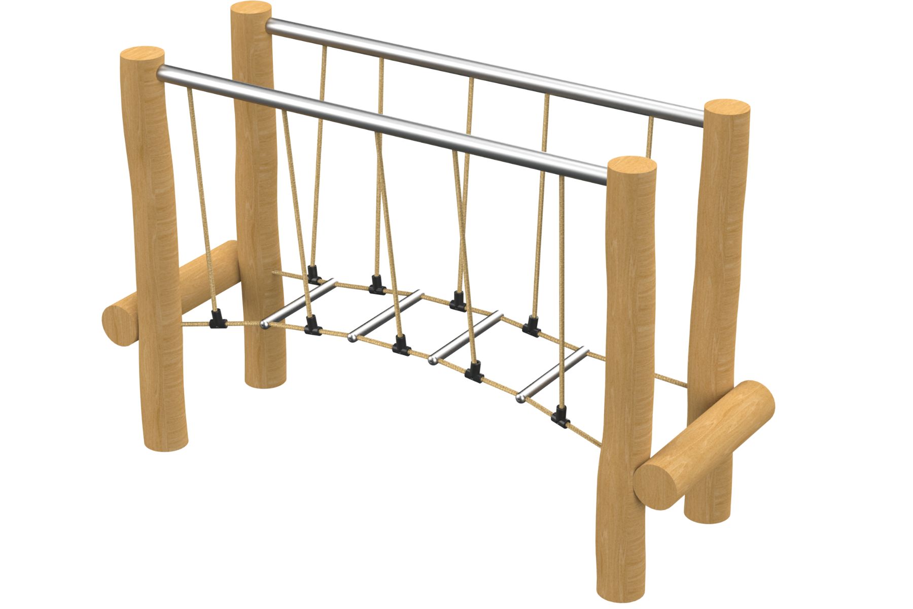 The Aston Rope Bridge combines natural European Robinia Wood with stainless steel and cables. It offers a challenging yet safe experience of crossing a swaying rope bridge. The stainless steel handrails ensure a firm grip, while the Robinia Wood steps provide stability during the crossing. This structure is especially suited for balance and movement challenges.