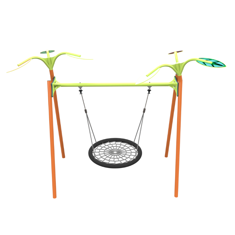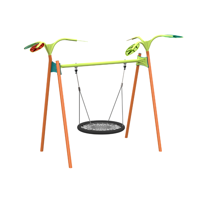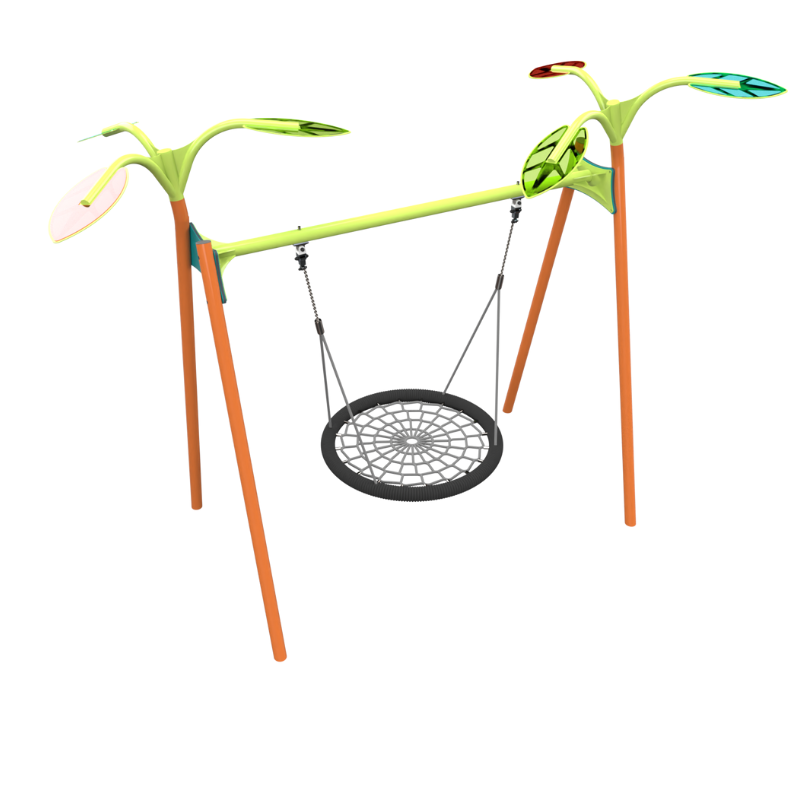 The swing set is one of the central and most beloved structures in any playground. The joy of swinging, the sense of release, and the exhilarating motion are essential not only for joy but also significant in a child’s development. A rope nest swing from the Forest series, its design is inspired by nature, with colorful leaf crowns made of semi-transparent polycarbonate that add a magical and unique dimension to the playset. The wide rope nest seat allows several children to swing together and enjoy a shared and safe swinging experience.