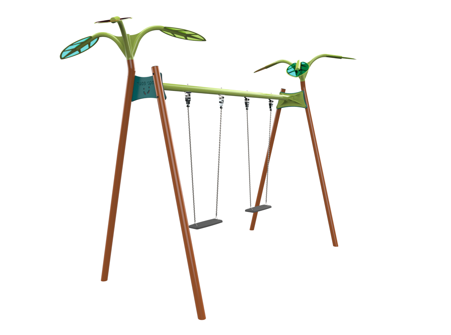 The swing set is one of the central and most beloved structures in any playground, offering a unique play experience that combines a sense of freedom, exhilaration and social interaction. Swinging provides children with a sense of excitement but can also be calming, all while helping to develop important motor skills such as balance and coordination. A double-seat swing set from the Forest series, its design is inspired by nature, with colorful leaf crowns made of semi-transparent polycarbonate that add a magical and unique dimension to the playset. Customer’s choice in seats: Toddler Seat: A rubber seat designed in a closed structure with a leg divider for safe use by young children. Suitable for seated infants up to the age of three. 3-and-Up Seat: A flat seat, suitable for children and adults, made from rubber for softening impacts.