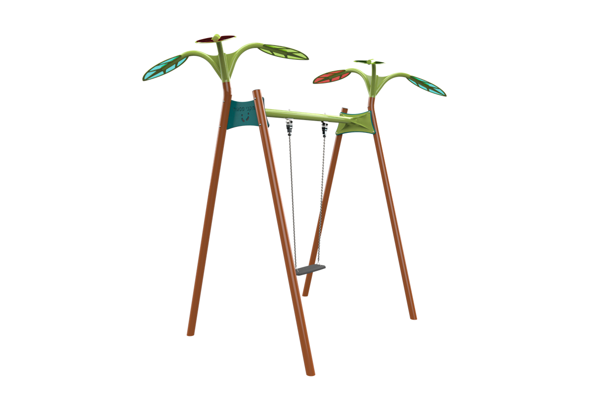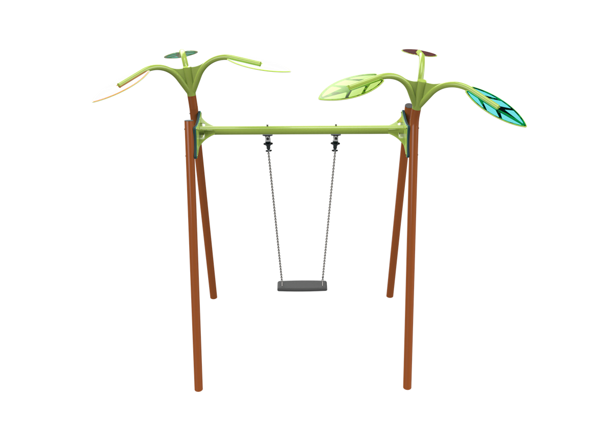 The swing set is one of the central and most beloved structures in any playground, offering a unique play experience that combines a sense of freedom, exhilaration and social interaction. Swinging provides children with a sense of excitement but can also be calming, all while helping to develop important motor skills such as balance and coordination. A single seat swing from the Forest series, its design is inspired by nature, with colorful leaf crowns made of semi-transparent polycarbonate that add a magical and unique dimension to the playset.