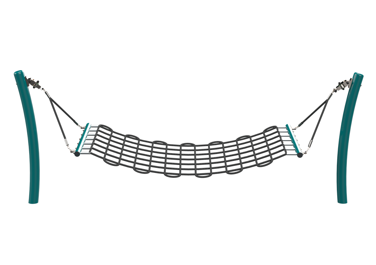 A hammock swing with a luxurious cable seat that serves as an island of quiet and rest in the playground. The gentle swinging motion aids balance, and the reciprocating motion while lying down is especially relaxing.