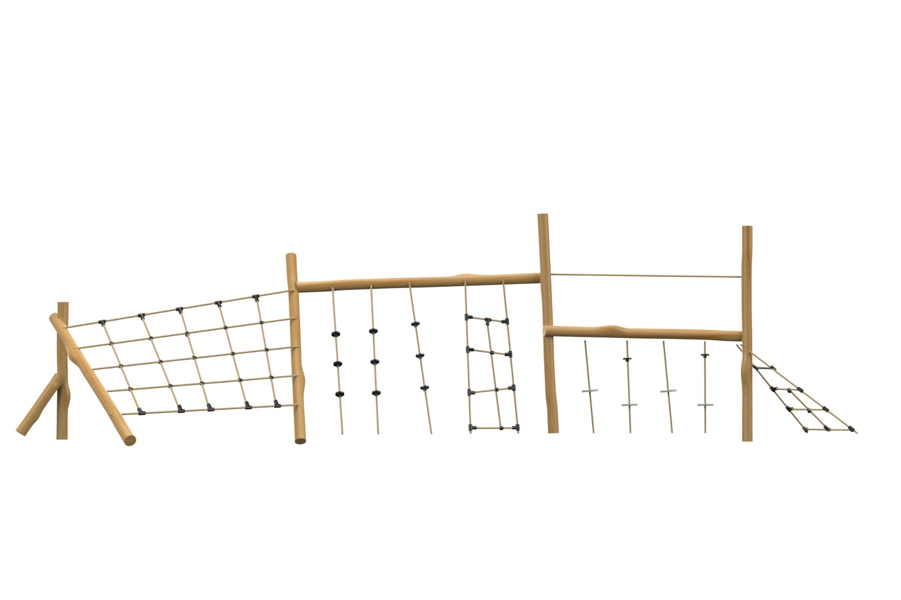 Karma is a Mini-Ninja fitness course made from high-quality, natural Robinia Wood and 18/16 diameter cables. The structure consists of a series of climbing and movement challenges at various angles and elements. The tilting design adds both fun and challenge, while also promoting flexibility in thinking and body movement. It strengthens the shoulder girdle, arm and leg muscles, core muscles, and overall balance. Karma is part of the Mini-Ninja series, designed for climbing, challenge, and fitness games, suitable for solo or group play.