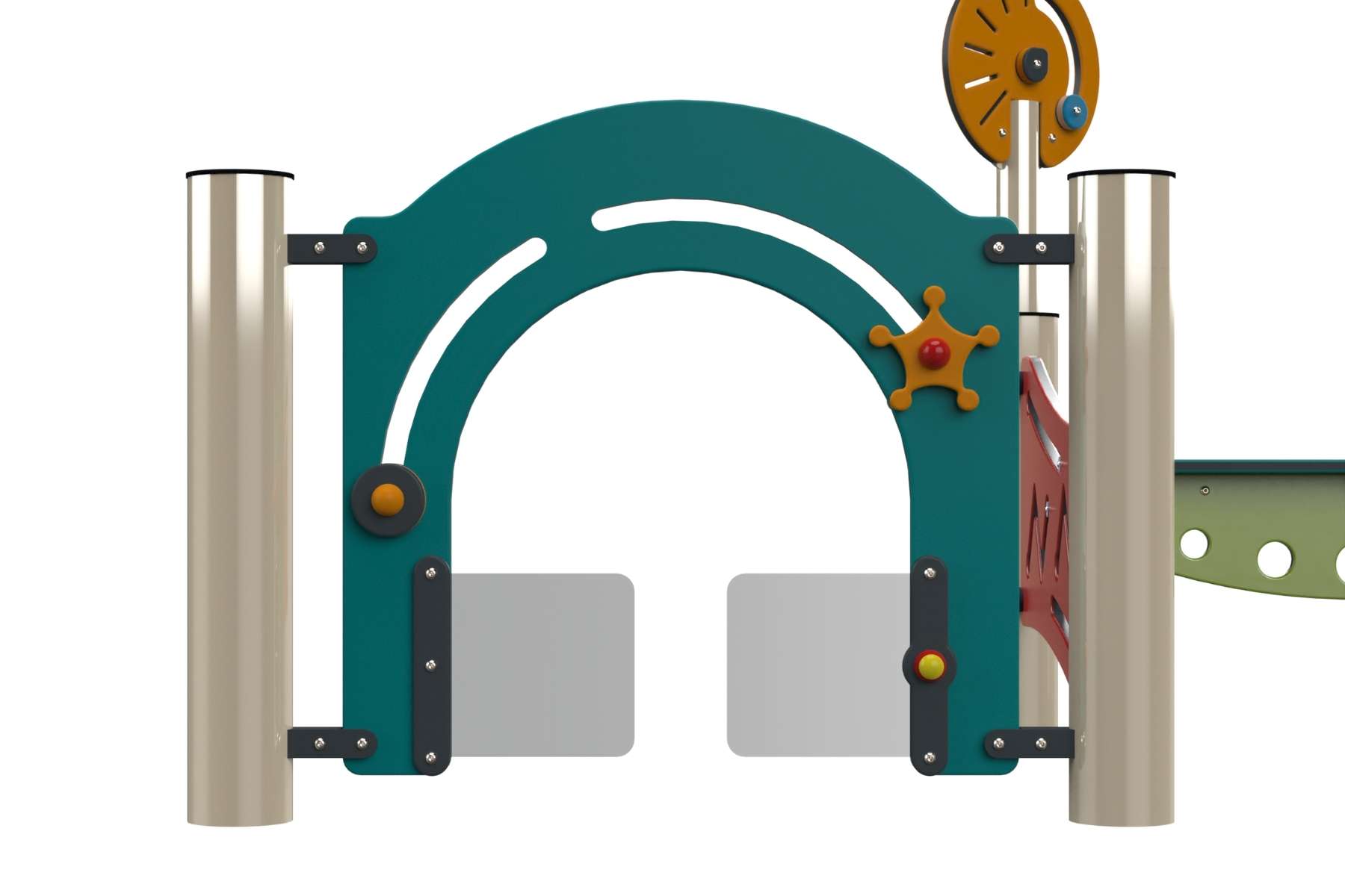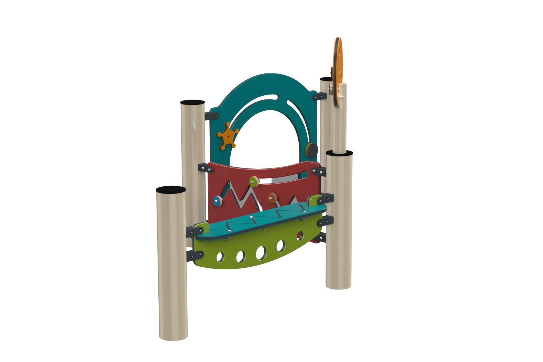 A toddler obstacle course for sensory stimulation and development. Composed of a base of three HDPE panels that enable crawling through a rubber door, games for motor and cognitive development, and a step for rest, climbing, and jumping. Encourages curiosity and exploration. Suitable for individual or group play. Specially developed for young children and designed to allow the parent line of sight and availability to support at every stage.