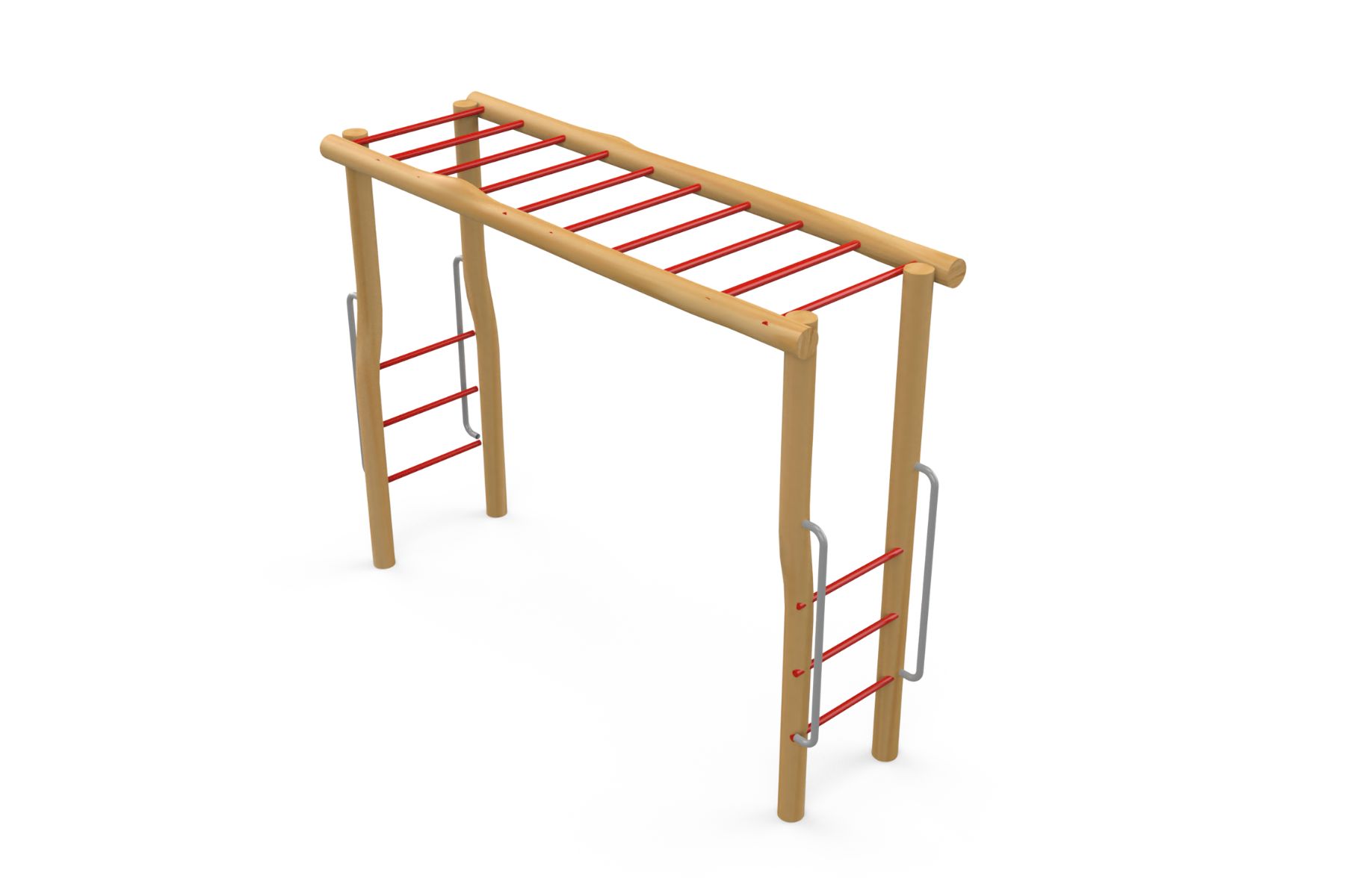 The Robina Monkey Bars is made from natural Robinia Wood and feature steel rungs installed at a height, designed for handwalking. This structure challenges children to maintain a steady grip and develop their arm muscles and balance. The ladder’s design invites children to explore the limits of their physical abilities in a fun and challenging way.