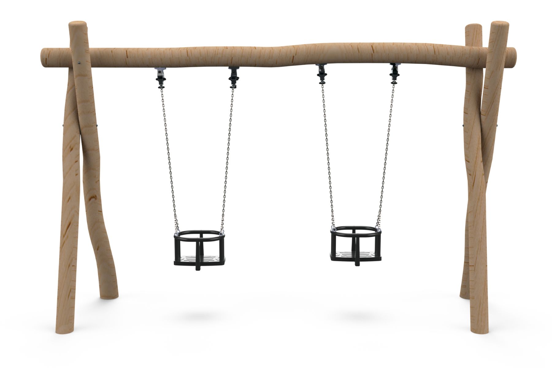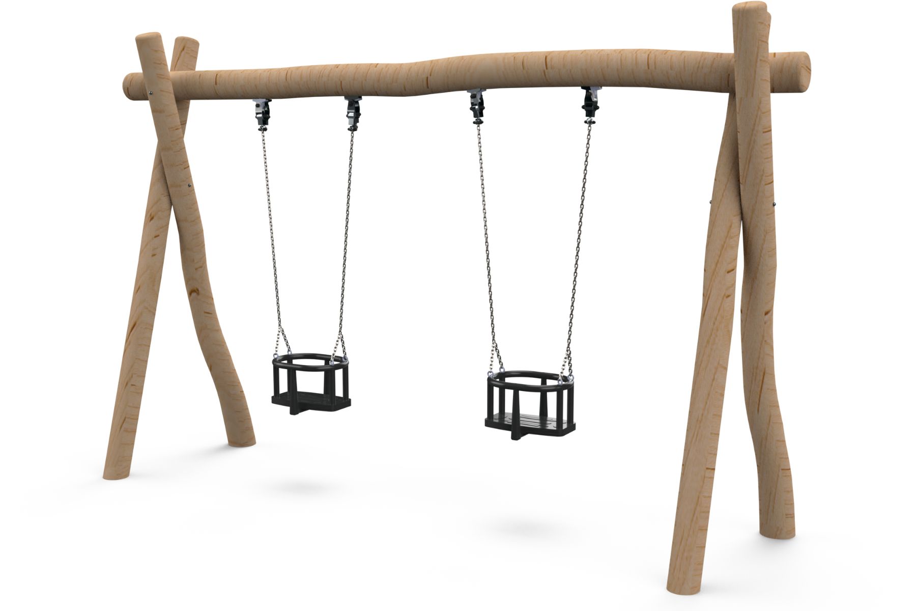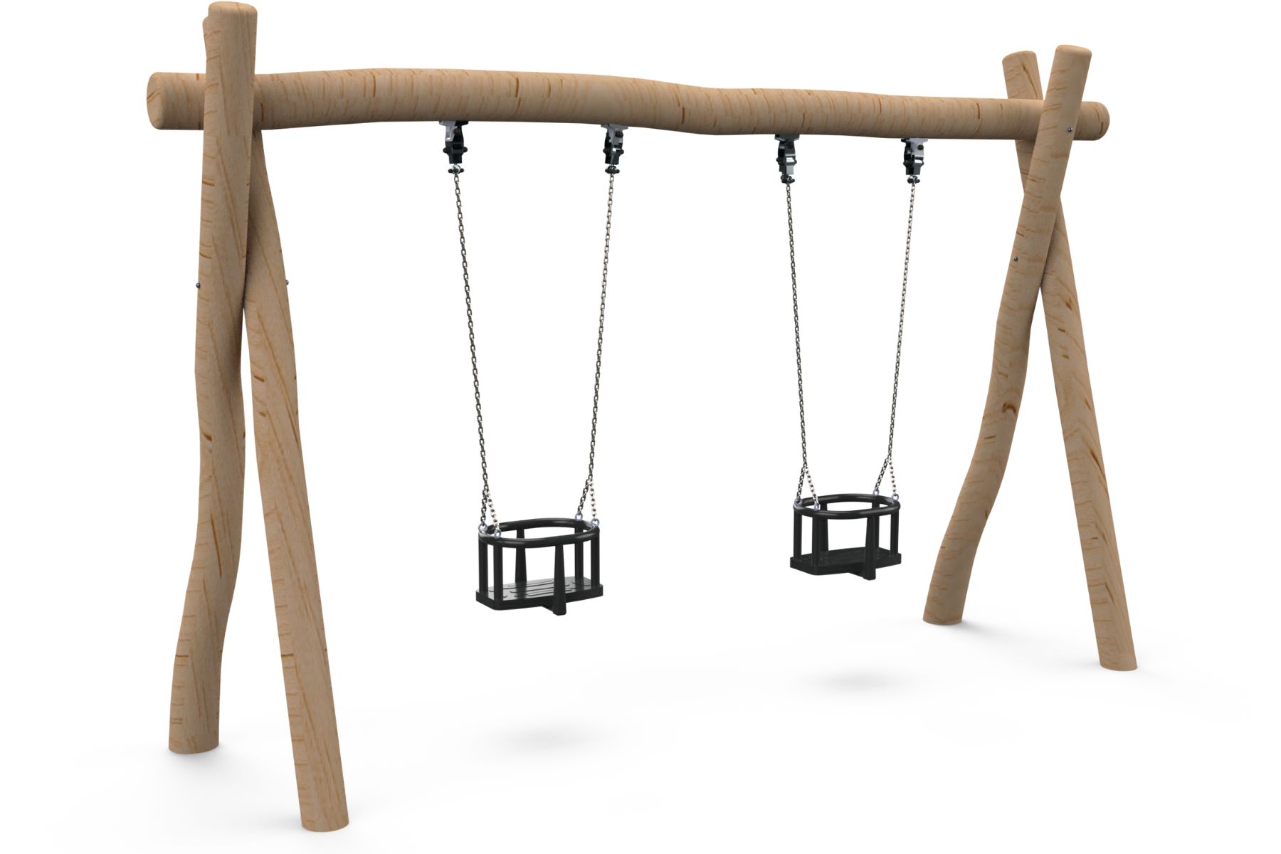 A swing for two with a natural Robinia Wood frame, adaptable to different sized seats. The swings provide a fun and safe swinging experience for kids and adults alike, with a design suitable for all ages. Swinging is one of the central experiences in a playground, as it contributes to the motor development of children, enhances balance, and gives a sense of calmness and liberation. Whether it’s for young children or adults, the swings offer a place to relax and enjoy shared moments of joy.